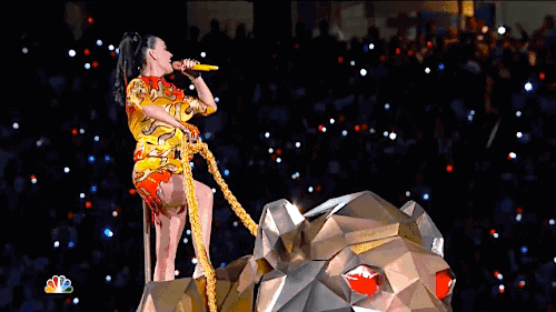 2015年,水果姐Katy Perry骑“狮子”出场演绎热单《Roar》,非常惊艳,创造了历年超级碗中场秀收视率之最。