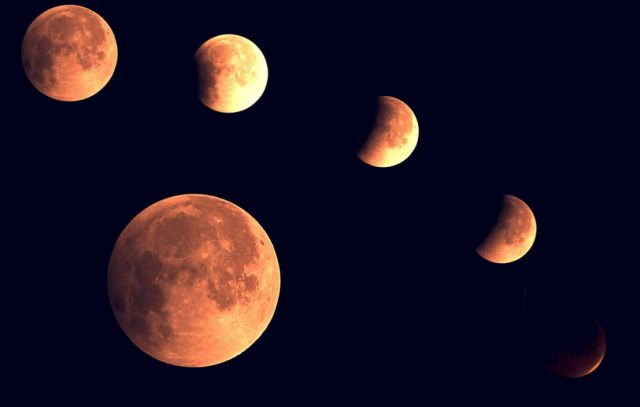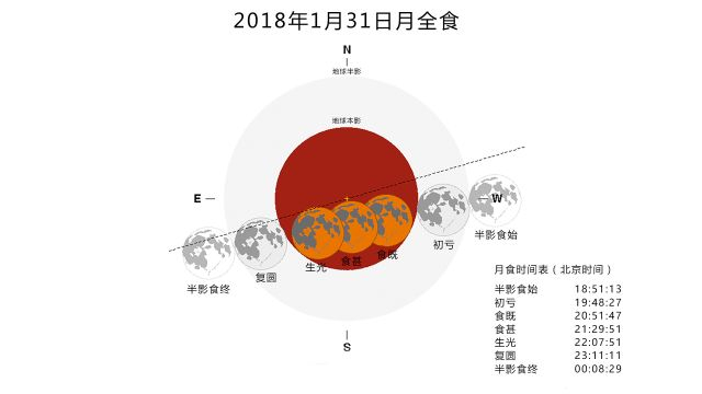 2018年1月31日月全食的时刻图,图片来源:NASA