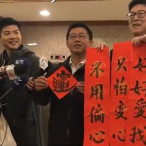 姚文智挥毫以春联隔空回复。(图片来源:视频截图)