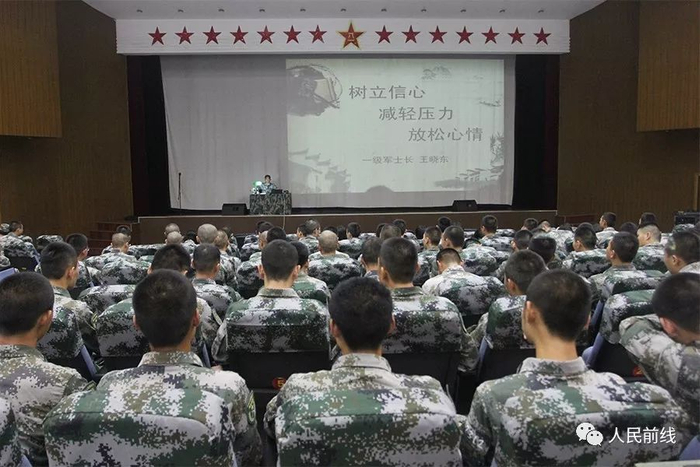 ▲王晓东利用业余时间自学,考取了国家二级心理咨询师资格证书。图为他正在给新战友进行心理辅导。
