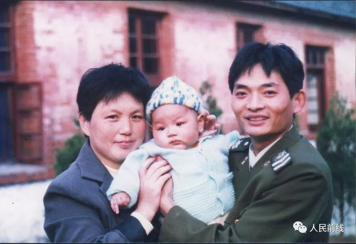 ▲爱人朱佩琳带着刚出生不久的儿子来队探亲。如今,儿子王睿已经是一名高三学生,学习成绩优异。