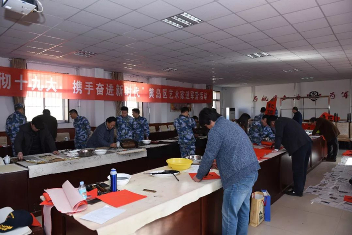 活动现场,书法家们与官兵齐聚一堂互动交流