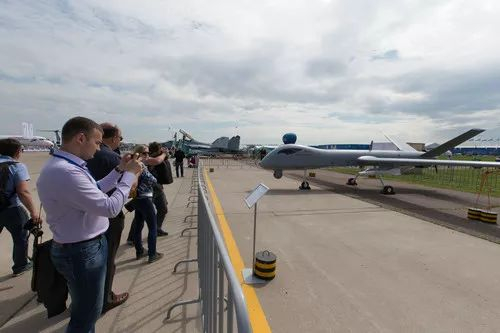 ▲资料图片:2017年7月18日,在俄罗斯首都莫斯科郊外的茹科夫斯基市,参观者在莫斯科航展上拍摄“翼龙”I无人机全尺寸模型。新华社记者 白雪骐 摄