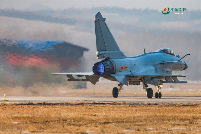 歼-10战机开加力起飞。杨盼 摄