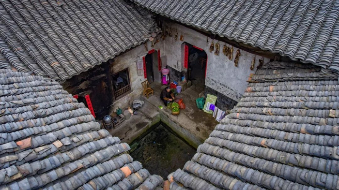 ▲2018年2月17日,湖北省大悟县。大年初二,一个古民居,老人在择菜。门上的对联和腊肉表现出了春节的气氛。张红霞 摄
