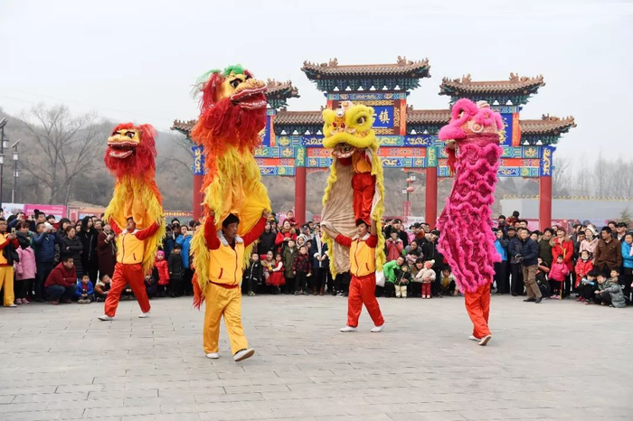 ▲2018年2月19日,河北省邢台市。威县民间艺人在新春文化庙会上舞狮庆新春。赵永辉 摄