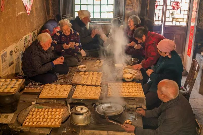 ▲2018年2月20日,山西省黎城县东庄村。正月初五,农村有破五吃饺子的习俗,一群留守在家的老人们也欢聚一堂,吃饺子唠家常,其乐融融!静观天下 摄