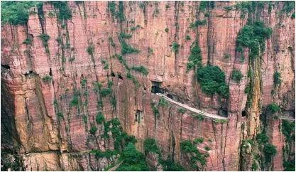 举世闻名的郭亮隧道,位于河南省太行山区,此隧道开有30多个“窗户”,从“窗户”往下看便是万丈深渊,隧道高度仅为15英尺,宽度12英尺。由于其陡峭险峻,被称为“世界上最险要的十条道路”、“死亡之路”之一。
