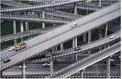 还有这样不是停车场,胜似停车场的公路——就是中国人自己可能都没见过有这么多条车道的公路。