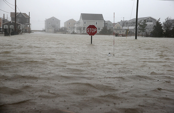 在马萨诸塞州首府波士顿,东部沿岸区域2日遭遇今年以来第二次洪水。