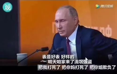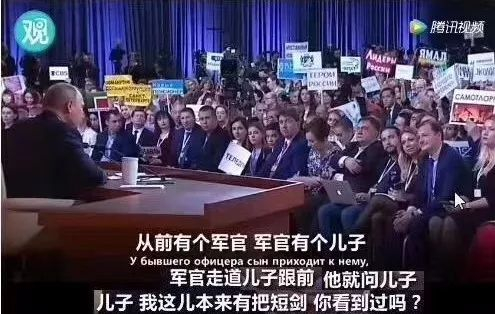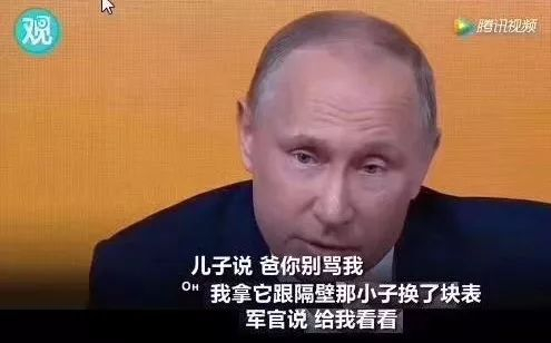 去年底的一次记者会上,有记者就军费问题向俄罗斯总统普京犀利提问:提高军费不怕降低国民生活水平吗?普京讲了一个笑话。一位前军官问他的儿子:“我桌上有一把佩剑去哪儿了?”儿子回答说:“别骂我,我把它拿去跟邻居家的小孩换了一块表。”军官说:“给我看看。嗯,是块好表。但如果明天有强盗来了,打死我和你妈妈,欺负了你的姐姐,那你就跟他说‘晚上好,现在是莫斯科时间晚上12点30分。’”