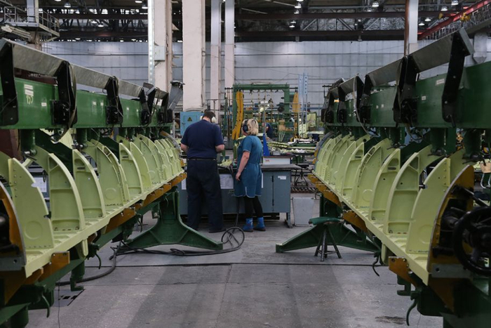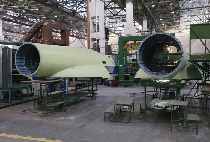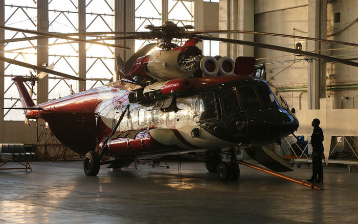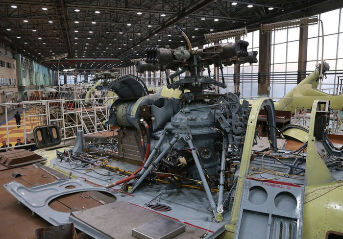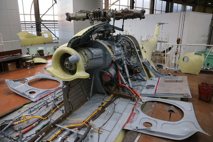 处于打开状态的米-8直升机发动机,等待维护作业。