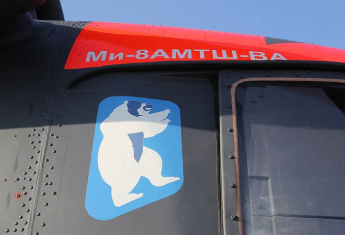 米-8AMTSH-VA北极专用直升机机身上的北极熊图案。