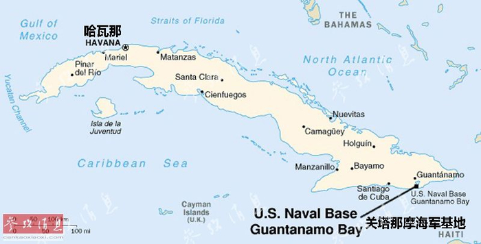 美国与关塔那摩湾的关系由来已久,早在1898年,美西战争期间,美海军陆战队击败了驻扎在当地的西班牙守军,夺取了关塔那摩湾,并于1903年2月开始将关塔那摩基地租用合法化。