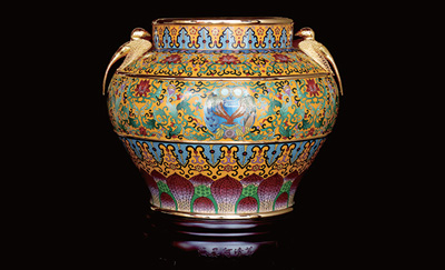 在中国“非遗”文化中,这种需要108道繁琐工艺程序的特种工艺品——景泰蓝在明朝景泰年间盛行,因使用的珐琅釉多以蓝色为主而得名。景泰蓝制作既运用了青铜工艺,又吸收了瓷器工艺,同时大量引进传统绘画和雕刻技艺,是集冶金、铸造、绘画、窑业、雕、錾、锤等多种工艺为一体的复合性工艺。