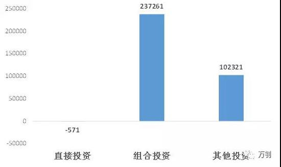 根据美国2017年前三季度国际收支平衡表的金融项目,我们可以看到最大的顺差项为组合投资,也就是其他国家所购买的美股、美债等。