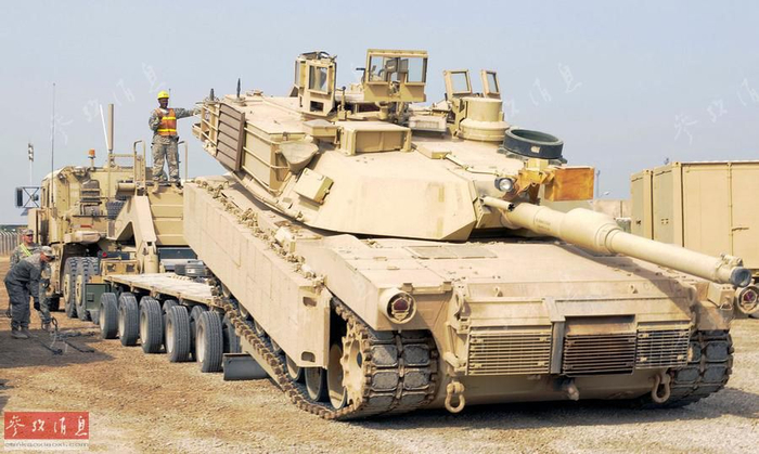2011年11月4日,伊拉克Adder应急作战基地内,一辆隶属于美国北卡罗来纳州陆军国民警卫队的M1坦克正在开上一辆坦克运输车准备撤离,这是美军全面撤离伊拉克行动的一部分。