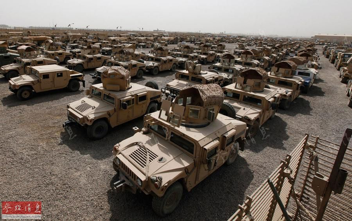 2011年9月30日,巴格达“自由”营地内,停放着大量悍马车。
