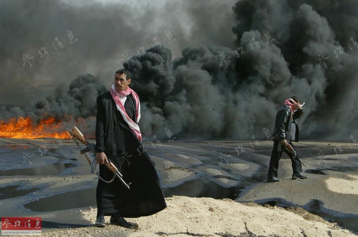 2003年3月26日,巴格达南部某高速公路上,隶属于美海军陆战队第1师、第3营的士兵在沙暴中正在向伊拉克军队开火还击,此前他们刚遭到迫击炮袭击。