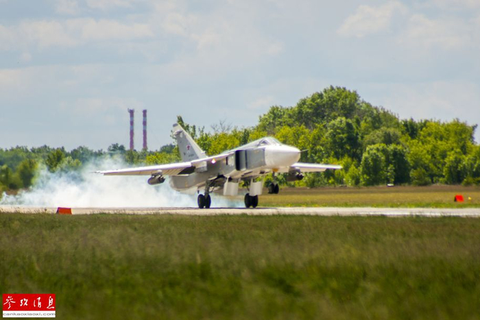 俄军媒体称,此次预选赛共有来自俄军全军的100余架各型战机参加。图为正在参加轰炸机对地面目标投掷炸弹科目比赛的俄军图-22M3轰炸机。