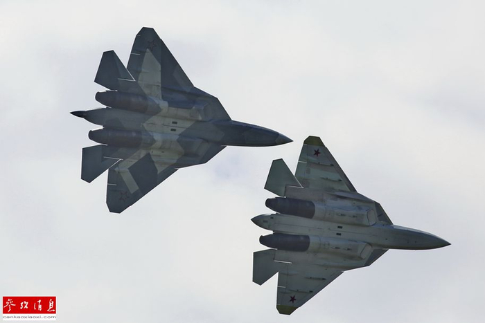 图为在预选赛中进行空中展示的俄军T-50隐身战机编队。