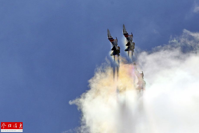 报道称,参与竞赛的包括俄空天军现役的苏-27,苏30SM,米格-29SMT战斗机,苏-25攻击机,苏-24M,苏-34战斗轰炸机,图22M3轰炸机,伊尔-78加油机以及卡-52,米-24,米-28等多型武装直升机。图为参加选拔赛的苏-27战斗机四机编队。