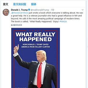 而特朗普也在3月26日的推文中力荐了这本书,他说:“豪伊•卡尔写了一本人人都在讨论的书。他是个神队友。他是个退休的记者,有很大的影响力。他把那次竞选称作现代历史上最令人惊讶的竞选。这本书叫《究竟发生了什么?》,好好享受这本书把!