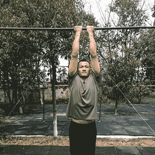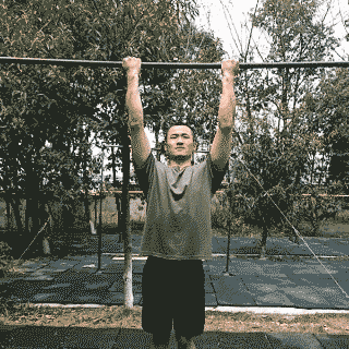 动作要领:1、双手正握单杠,两手靠拢,腰背以下部位放松,背阔肌充分伸长,两小腿自然伸直并拢,然后用力拉杠,集中背阔肌的收缩力,屈臂带动身体向上。