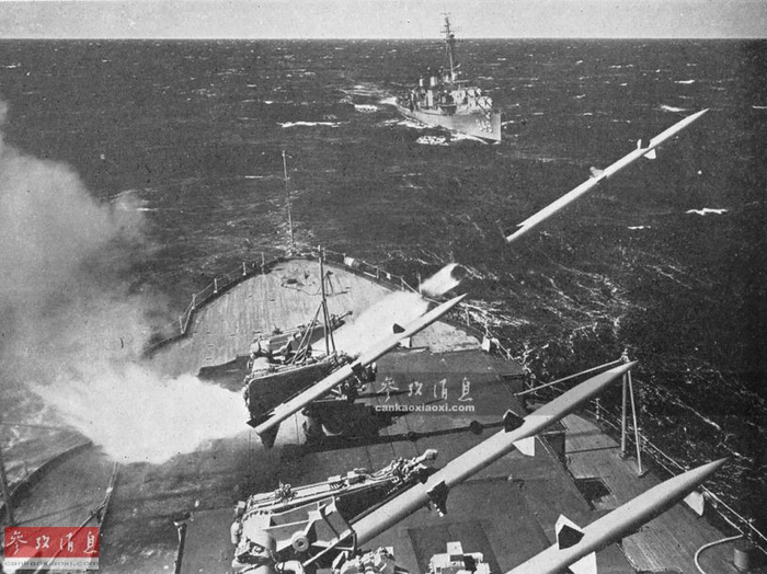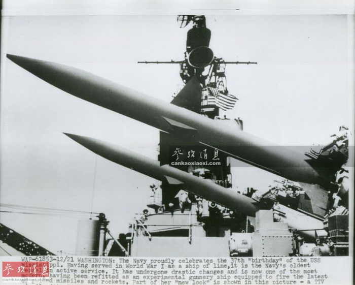 图为1954年,正在发射一枚“小猎犬”中程舰空导弹的训练舰,但注意看船舷上的舰名,没错,这艘战舰正是由一战期间就已投入美海军服役的“密西西比”号(BB-41)战列舰改装而来,本组图就此解读。