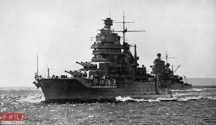 美海军于1931年对“密西西比”号进行了现代化改装,拆除了陈旧的副炮,换装了多种新型设备, 图为1938年12月,正在编队航行的“密西西比”号(近)和“新墨西哥”号(远),可见已拆除了笼式主桅,并改装为塔楼式艏楼,但射击钟仍有保留。