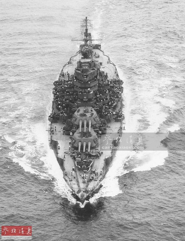 图为1945年4月拍摄的正在高速巡航中的“密西西比”号战列舰。