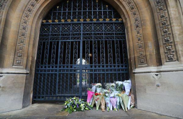 当天早些时候,有市民自发在剑桥大学学院门口摆放鲜花表达纪念。