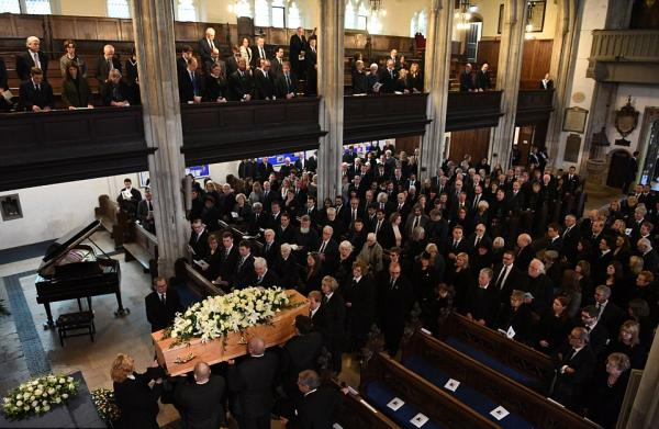 霍金亲人、朋友、同事步入教堂参加葬礼。