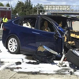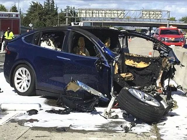 一名驾车人3月23日上午驾驶特斯拉Model X型运动型多功能车(SUV),在加利福尼亚州芒廷维尤一条高速公路行驶,撞上混凝土隔离带。他的车前部损毁严重并起火,引发后方两辆车相继追尾。驾车人在医院伤重不治。