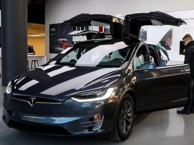 纽约市一家特斯拉店展示的特斯拉Model X型运动型多功能车(SUV)。(新华/路透)