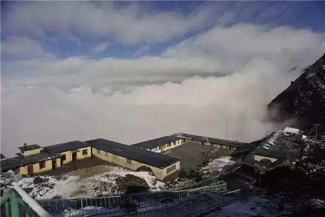 詹娘舍哨所,海拔4655米,建在雪山尖上,四周是接近垂直的悬崖峭壁。当地藏族群众说,那是鹰都飞不过的地方,官兵们却亲切地称它为“云中哨所”。