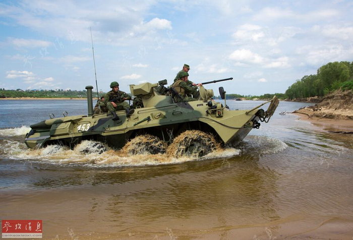 具备两栖涉水能力的BTR-90装甲车直接自行渡河上岸。
