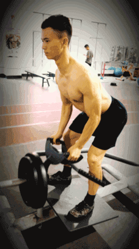 双手夹紧身体两侧,集中背阔肌的力将“T”杠拉向自己的腹部,稍微停顿,然后慢慢还原到起始位置。