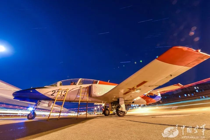 从首次夜航的乍暖还寒,到最后一个夜航的暖风轻拂,变化的何止是气候,更是培育新一代飞行学员追梦逐航的成长蜕变。在扣好空军战斗力主体培养最后一粒扣子的关口,有这样一群人在为未来的空天长城添砖加瓦,在为空军战斗力跃升加钢淬火,在以追梦的仰角戮力奋飞,将壮美航迹留在深色的夜空中化为彩缎,这般美轮美奂的雏鹰逐月场景,让每一名置身于练兵备战大时代里的“育鹰者”都感到与有荣焉。