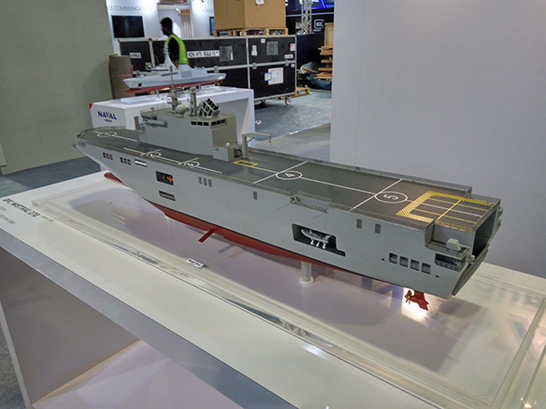 欧洲、美国等军火公司也参加了此次防务展,图为法国“西北风”级两栖攻击舰。