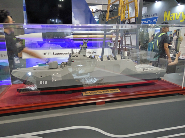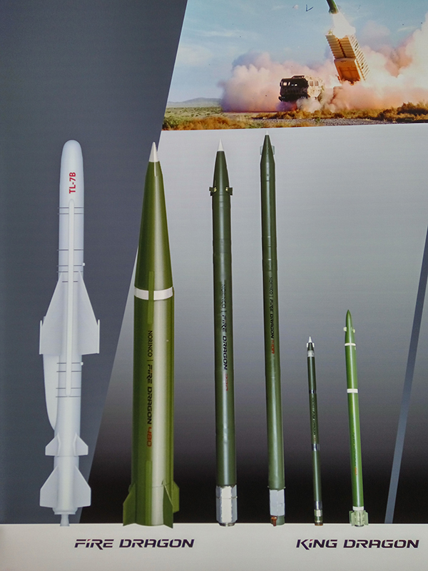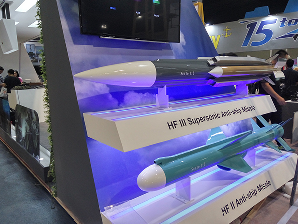 台湾地区也参加了此次防务展,图为参展的“雄风”-2和“雄风”-3反舰导弹。