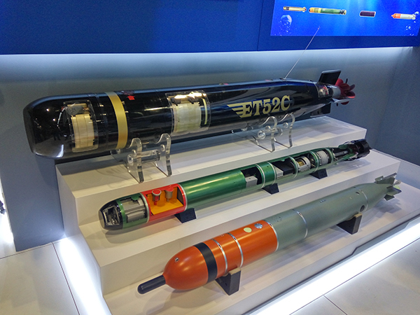 防务展上展出多种的中国外贸鱼雷。