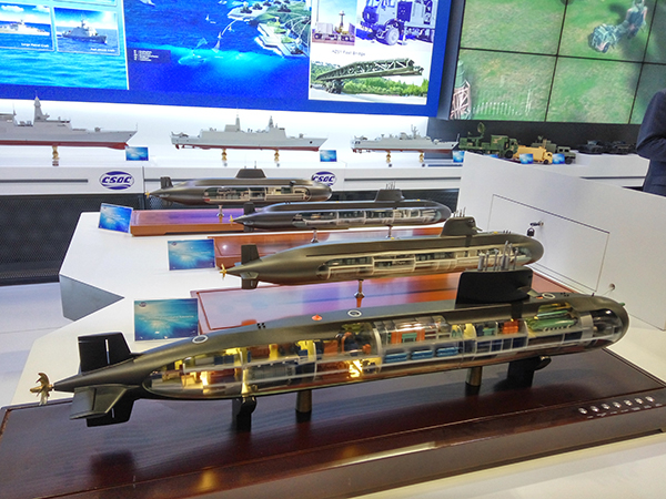 四种排水量不同的外贸潜艇亮相,排水量从200吨2000吨不等,产品线覆盖小型潜艇、中型潜艇和大型潜艇,可满足不同客户需求。