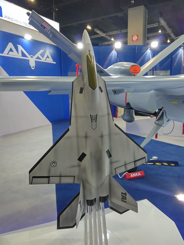 土耳其TAI公司展出的第五代战斗机模型,外形上与美国F-22有点相似。