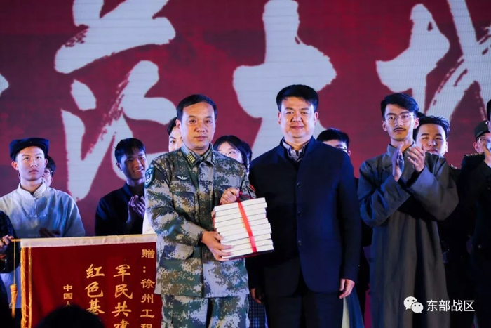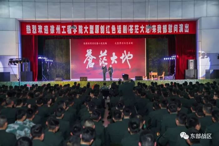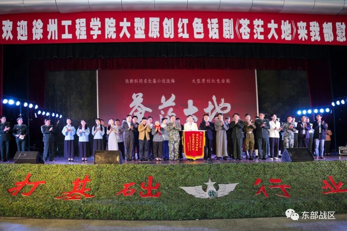 不仅如此,它还首次走进军营,在第71集团军“周丽平”生前所在旅正在开展的“传承红色基因,担当强军重任”主题教育第一专题之际,徐州工程学院刘校长一行人,带着对驻地部队的深情厚谊,对部队官兵的浓浓真情,精心筹划一场大型原创红色话剧《苍茫大地》前去该旅慰问演出,把一贯“高大上”的主题教育换成官兵们喜闻乐见的方式呈现,有效地深化主题教育效果,更加坚定官兵理想信念。