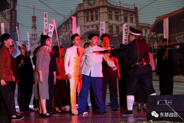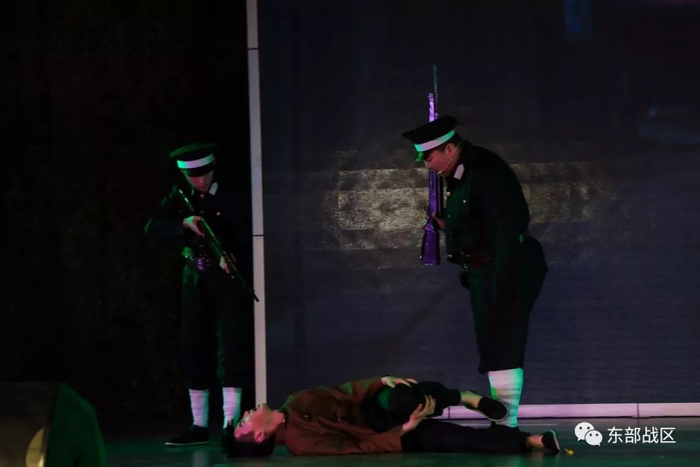 空间交错形式的幕前戏,让官兵们在不同的时空和情节中穿梭。现代时空重温了过往岁月,串联整部话剧,侧面展现了“许子鹤”的人格魅力,精准的投影技术、逼真的场景以及精美的道具,令官兵仿佛置身过去的时空,演员顿挫有力的台词和精湛的演技征服了现场官兵。先烈面对敌人“大刀”时面不改色的勇气、绝不向敌人屈服的顽强意志、在敌人重金利诱时对党和国家的忠诚,许多官兵潸然泪下。