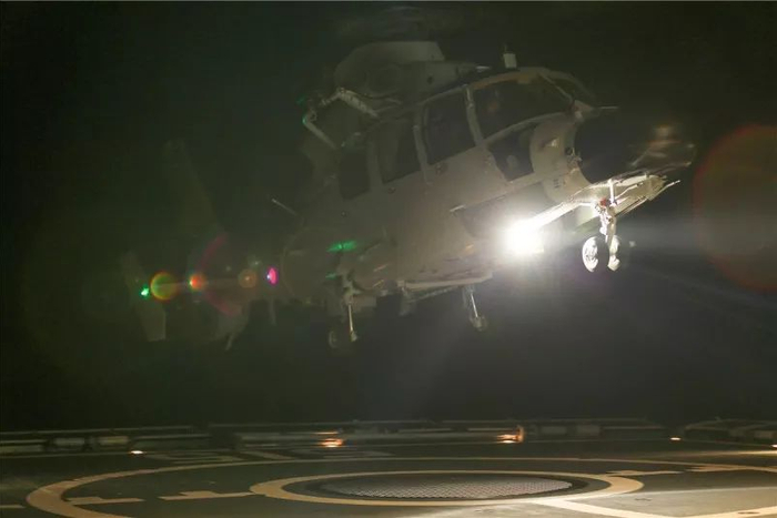 嘭!嘭!轻微地二下颤动后,直升机稳稳地落在了正在行驶的滨州舰上。走下飞机时,张全军说:“宁可备而不用,也不能用时无备。虽然直升机夜间起飞着舰难度大,但护航一线的形势瞬息万变,随时可能担负解救商船、救护伤员、武力营救等任务,只有最大发挥出直升机全天候快速机动的优势,我们才能掌握主动权。”