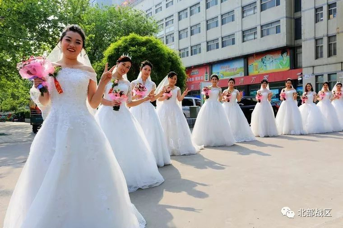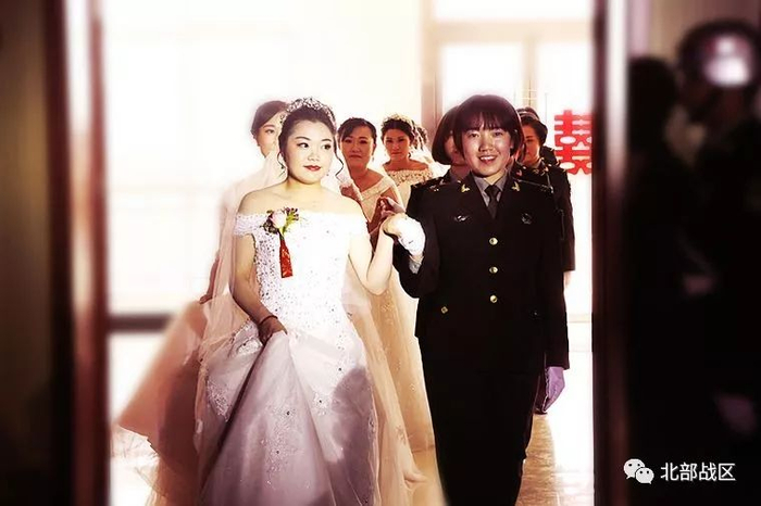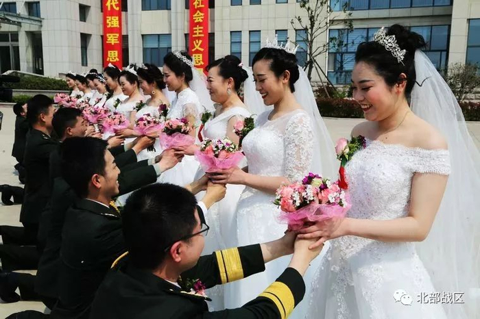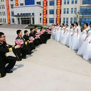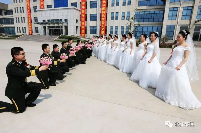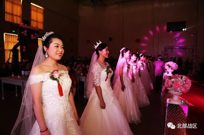 “嫁给他!嫁给他!”在战友们的“助威声”和祝福声中,“情定军营、助力强军”集体婚礼仪式正式开始。这是第80集团军某旅为11对新人举办的一场暖心“军营婚礼”。