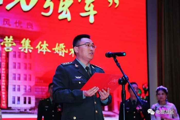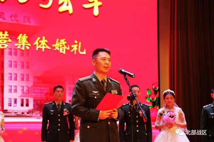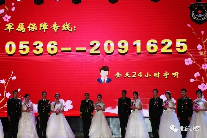 政委田明宇作为婚礼的证婚人,为11对新人送上了真挚的祝福,“由于军人职业的特殊性,在外驻训、参加演习已成为常态,为此,我们为所有的官兵专门设立军属保障热线,在您联系不到他或者家里有急事需要他时,只要一通电话,我们将立即为您解决问题,热线24小时为您接通!”政委的一番话引起了在场官兵的欢呼。