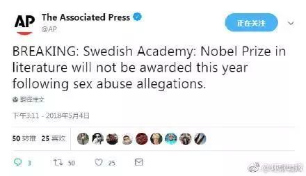 昨天下午,瑞典文学院表示,今年不会颁发诺贝尔文学奖,这让许多有诺奖情结的人唏嘘不已。